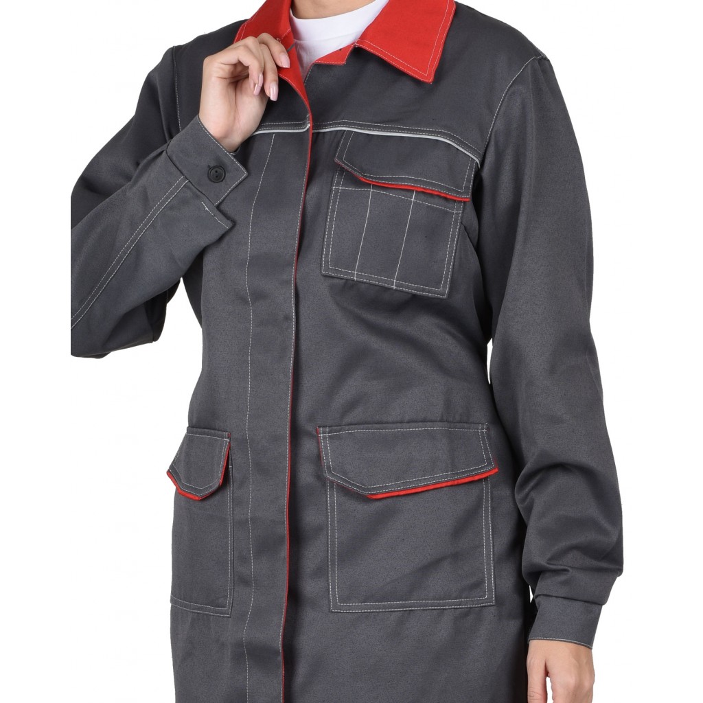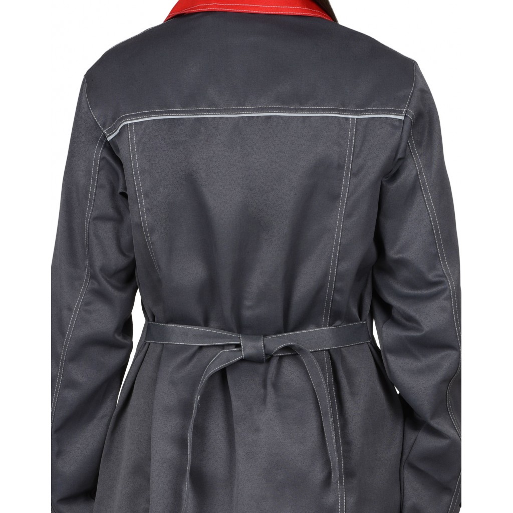 В халате предусмотрен кант СВМ д.3мм светоотражающий 100К для обеспечения сигнальной видимости в условиях пониженной видимости.