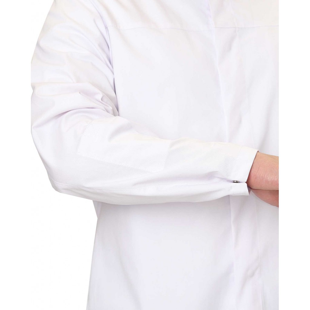 Халат для пищевого производства отвечает требованиям НАССР (ХАССП). Гигиеническая безопасность костюма достигается за счет внутренних карманов и скрытых застежек.