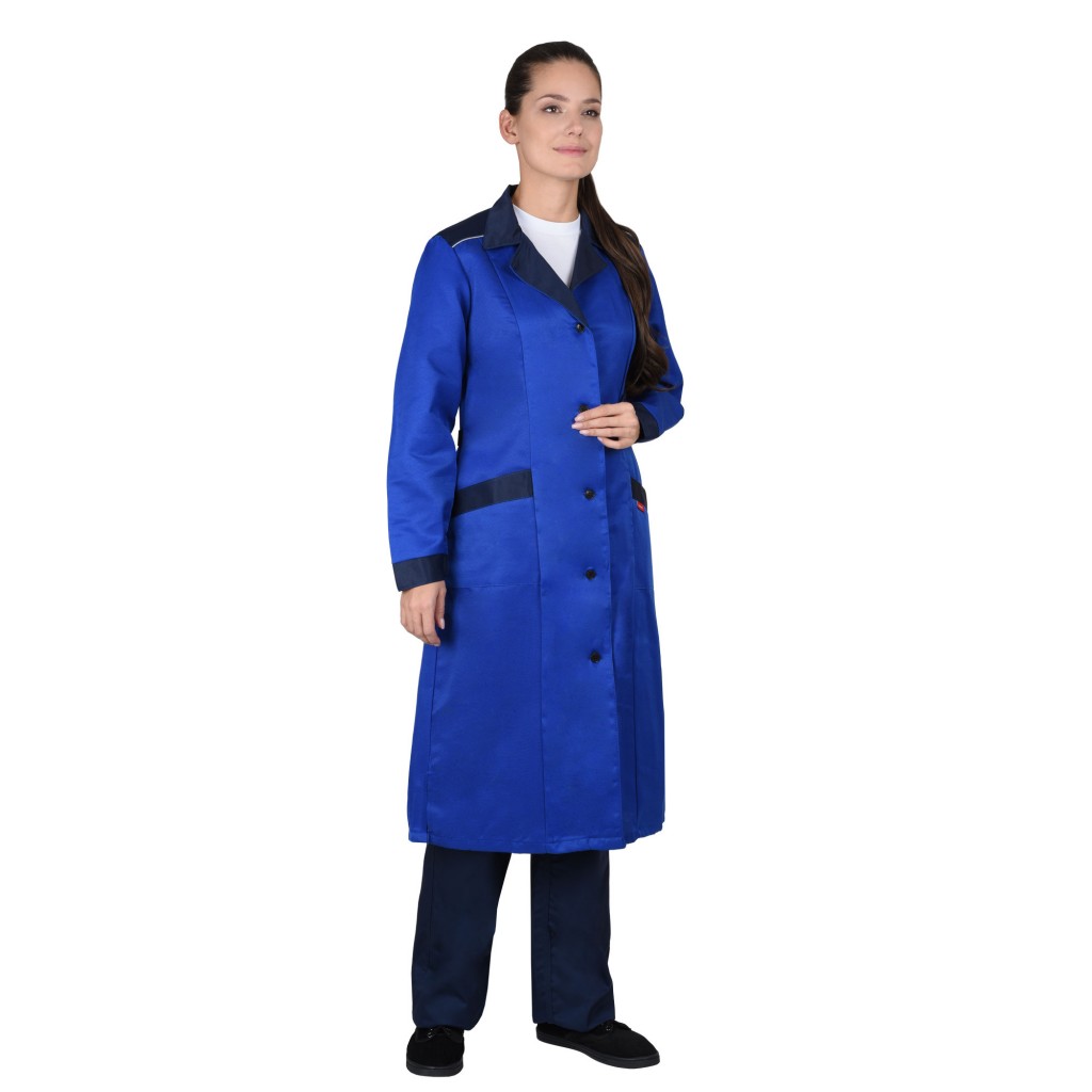 - Описание: Воротник английский, застёжка на пуговицы, карманы. Рукава с манжетами. СО кант по кокеткам. ГОСТ 12.4.131-83.
