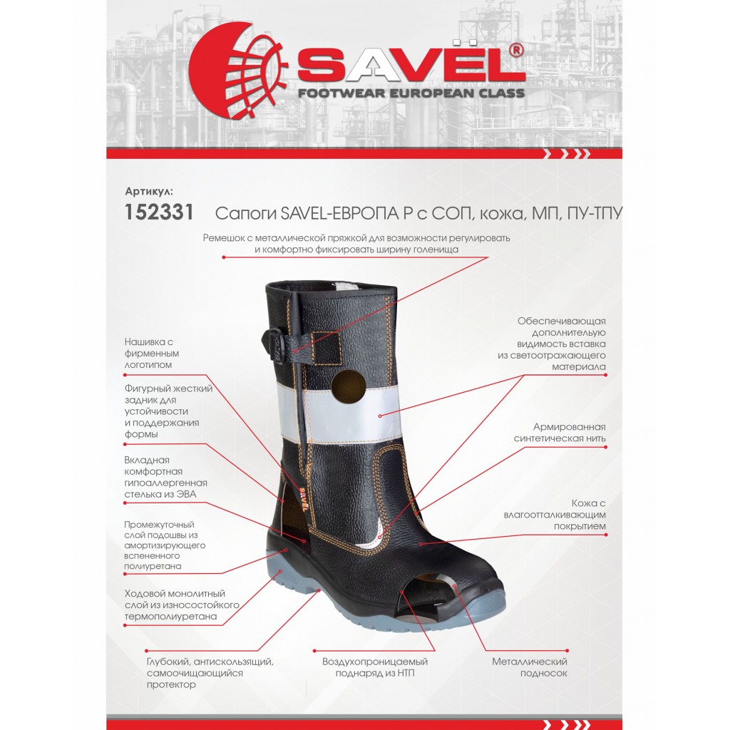 - Описание: Сапоги "SAVЁL-ЕВРОПА Р" — эталон безопасности и видимости в экстремальных условиях.