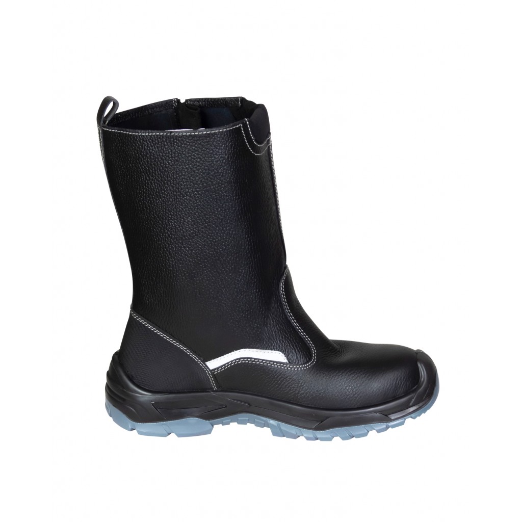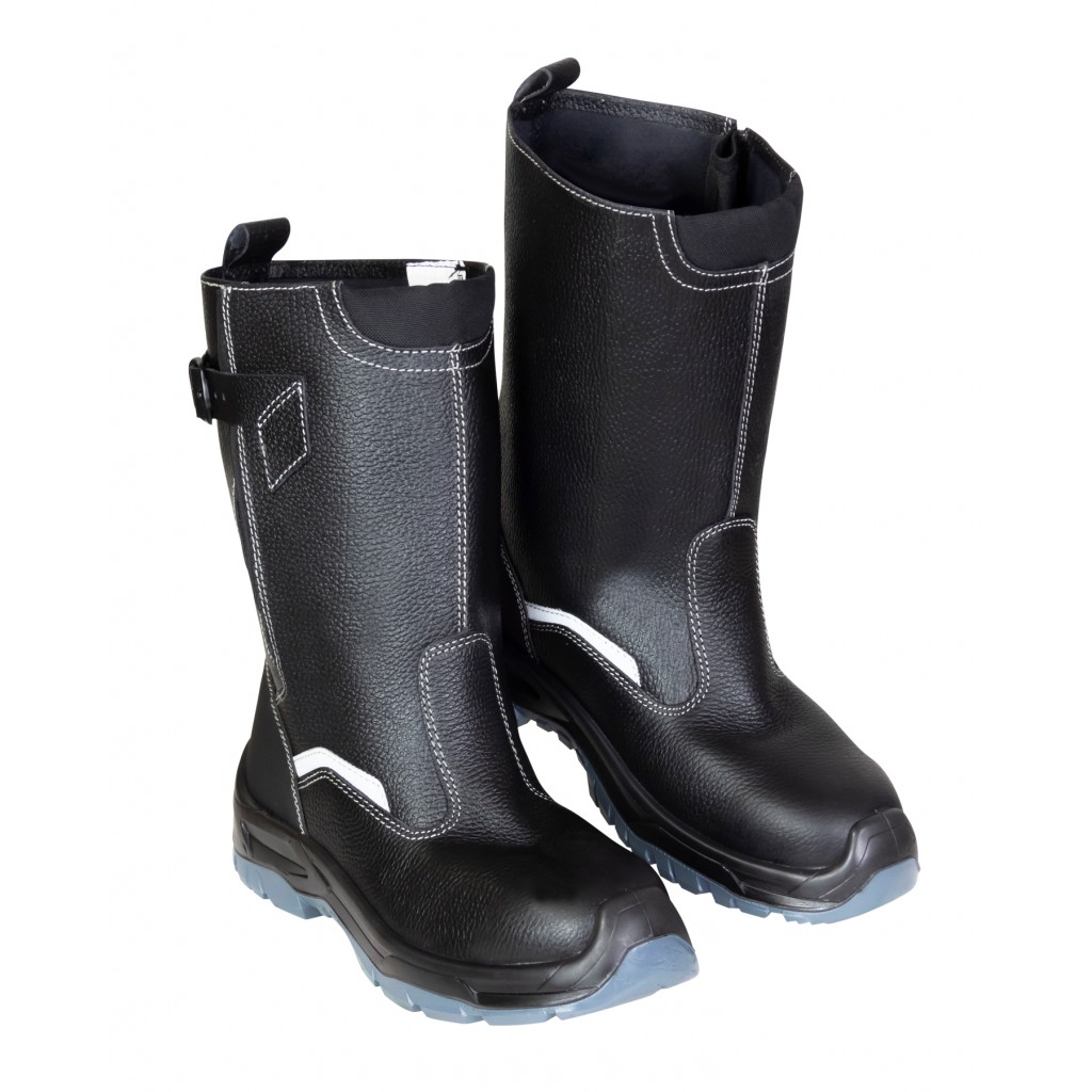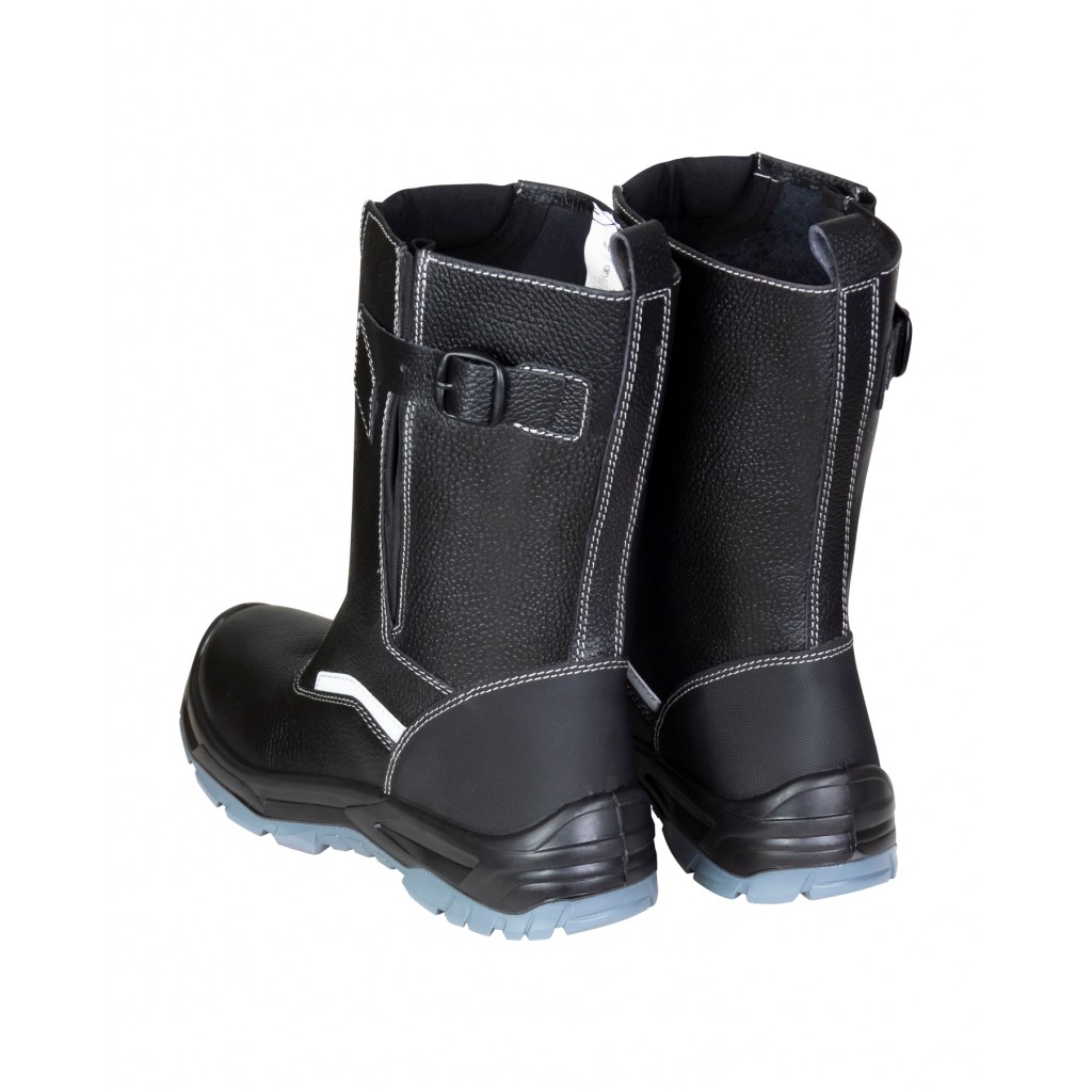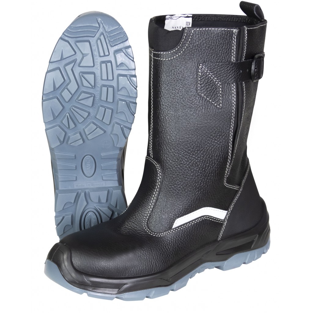 Голенище в сапогах "SAVEL-ДЖЕТ" из кожи, без подкладки, это обеспечивает комфортный микроклимат внутри, с помощью ремешка возможна регулировка по ширине. Вкладная стелька из материала ЭВА, дублированная 3D-сеткой отводит влагу и обеспечивает комфортную эксплуатацию при движении и в статике. Имеются световозвращающие элементы для привлечения внимания и исключения несчастных случаев на производстве в темное время суток. В носочной части стопы конструкция ботинок оснащена металлическими подносками, предохраняющими ноги от удара и имеющими ударную прочность не менее 200 Дж, что регламентировано российскими и европейскими стандартами. Антипрокольная стелька, расположенная между промежуточным слоем подошвы и штробельной подкладкой, дополнительно защищает стопы ног от проколов, порезов, сильных ударов и прочих производственных травм.