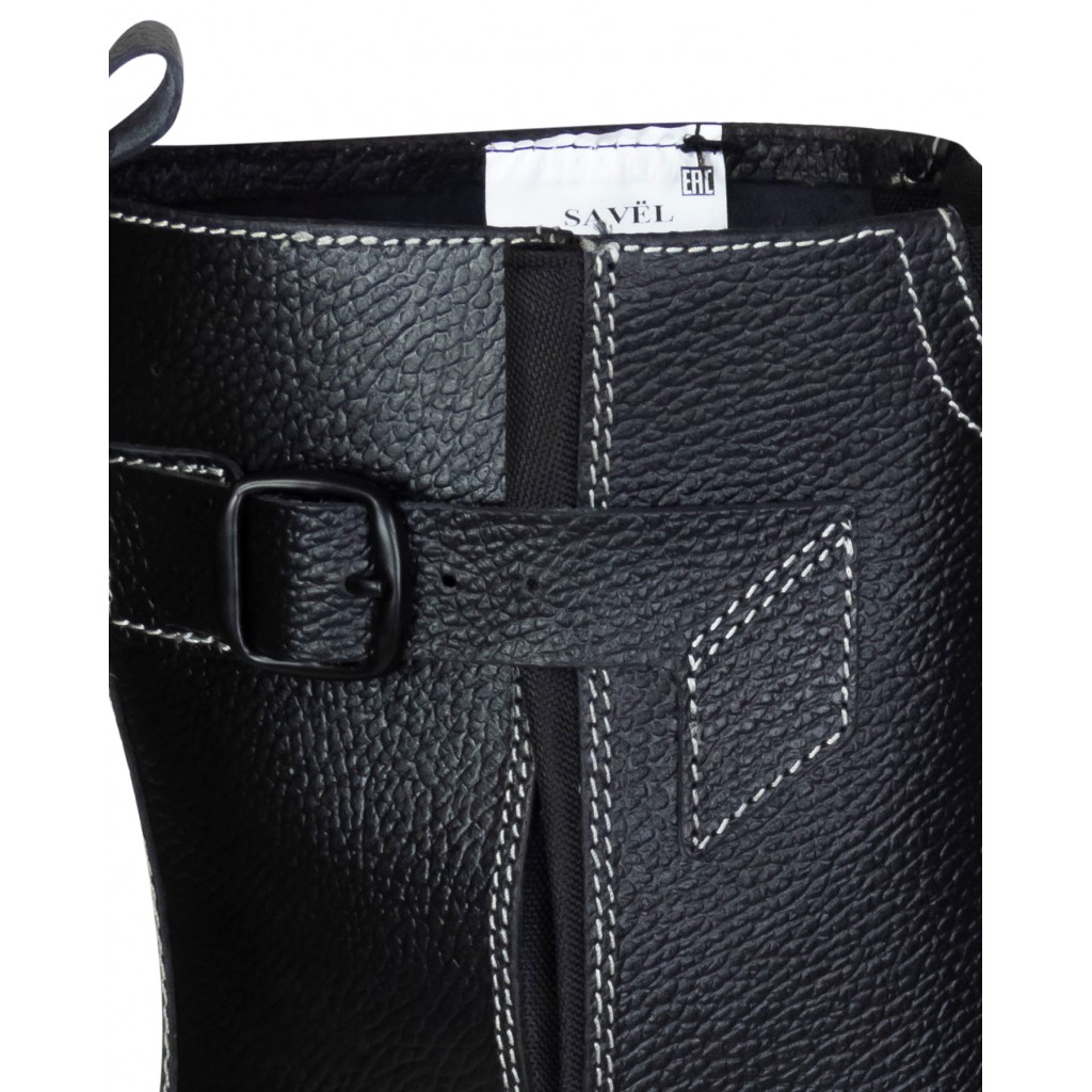 Голенище в сапогах "SAVEL-ДЖЕТ" из кожи, без подкладки, это обеспечивает комфортный микроклимат внутри, с помощью ремешка возможна регулировка по ширине. Вкладная стелька из материала ЭВА, дублированная 3D-сеткой отводит влагу и обеспечивает комфортную эксплуатацию при движении и в статике. Имеются световозвращающие элементы для привлечения внимания и исключения несчастных случаев на производстве в темное время суток.
