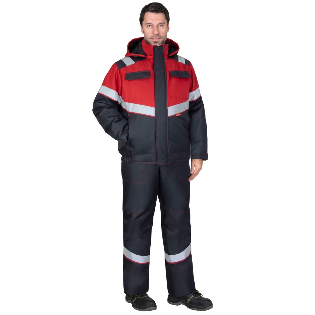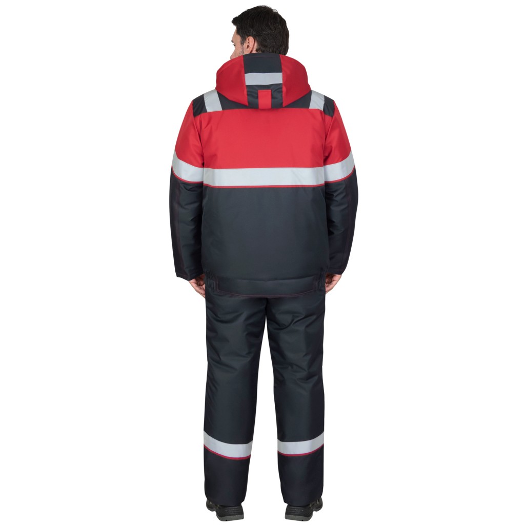 Костюм СИРИУС-НАВИГАТОР-1М зимний, куртка кор., п/к, тёмно-серый с красным и СОП