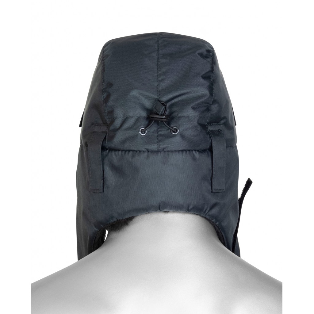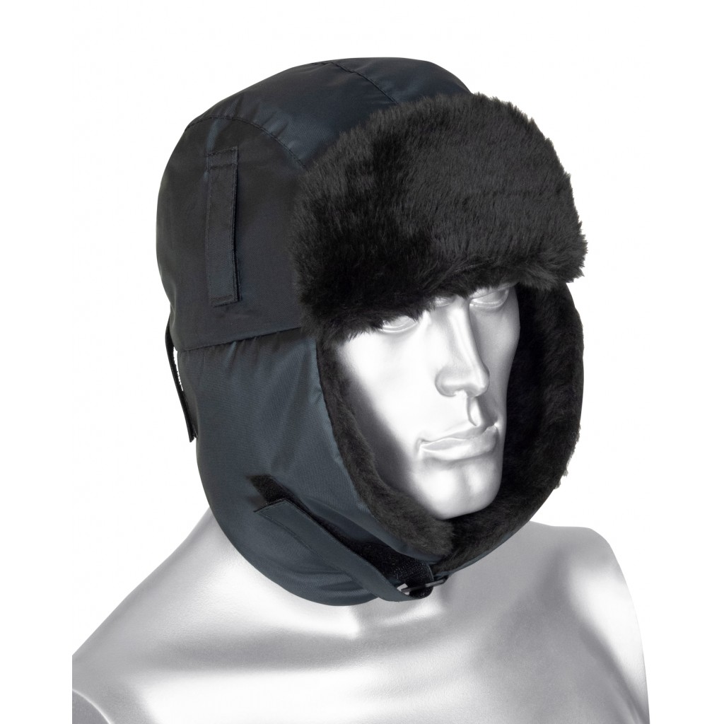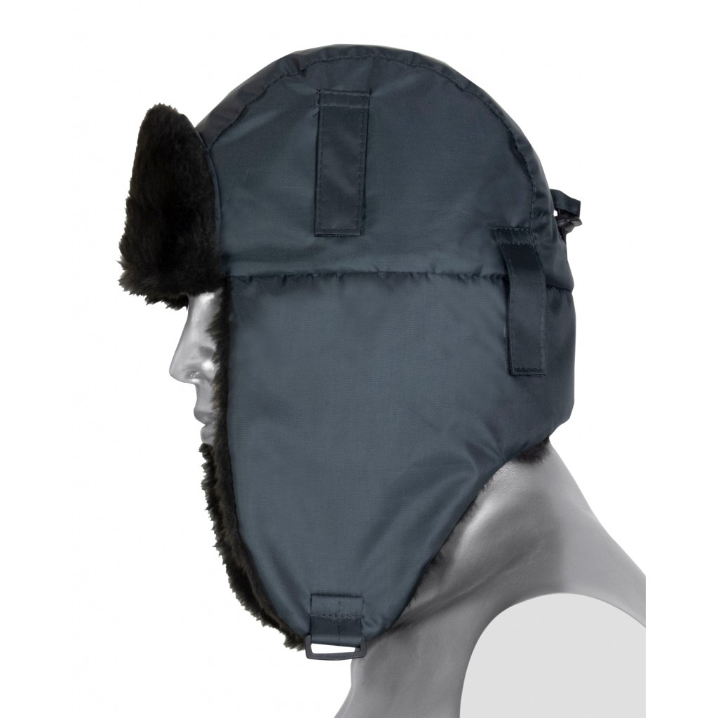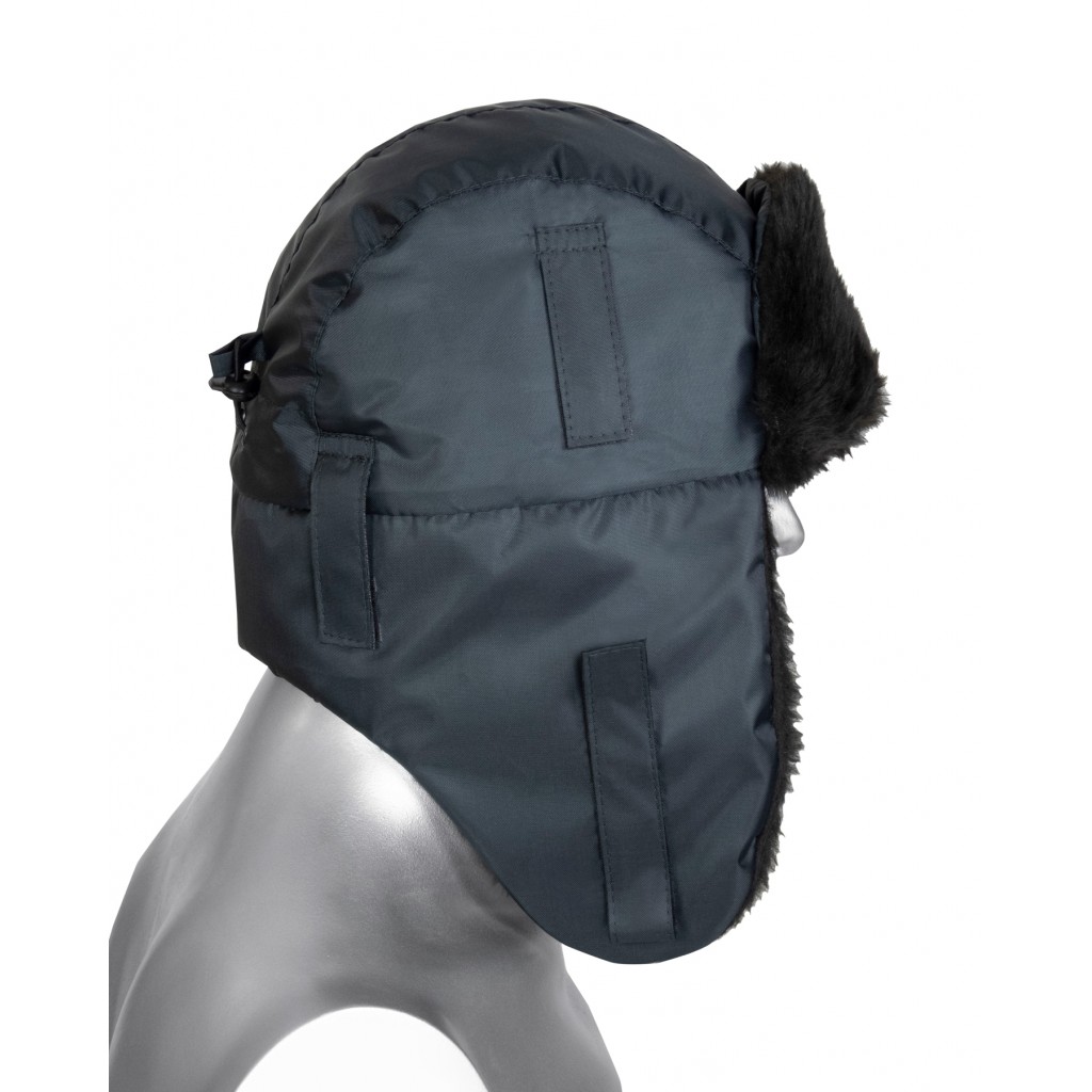 - Описание: Шапка-ушанка зимняя темно-серая с искусственным мехом черного цвета. На затылочной части резинка для более плотного прилегания к голове. На боковых частях шлевки для крепления каски.