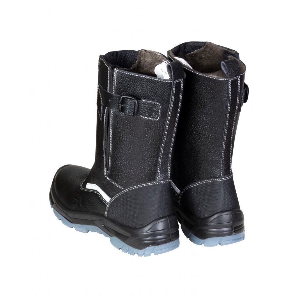 Голенище в сапогах "SAVEL-ДЖЕТ" из кожи, с помощью ремешка возможна регулировка по ширине, подкладка и вкладная стелька утеплённые, из шерстина. Имеются световозвращающие элементы для привлечения внимания и исключения несчастных случаев на производстве в темное время суток. В носочной части стопы конструкция сапог оснащена металлическими подносками, предохраняющими ноги от удара и имеющими ударную прочность не менее 200 Дж, что регламентировано российскими и европейскими стандартами.