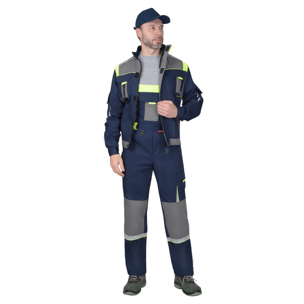 Куртка СИРИУС-СТАН синяя со средне-серым и лимонной отделкой