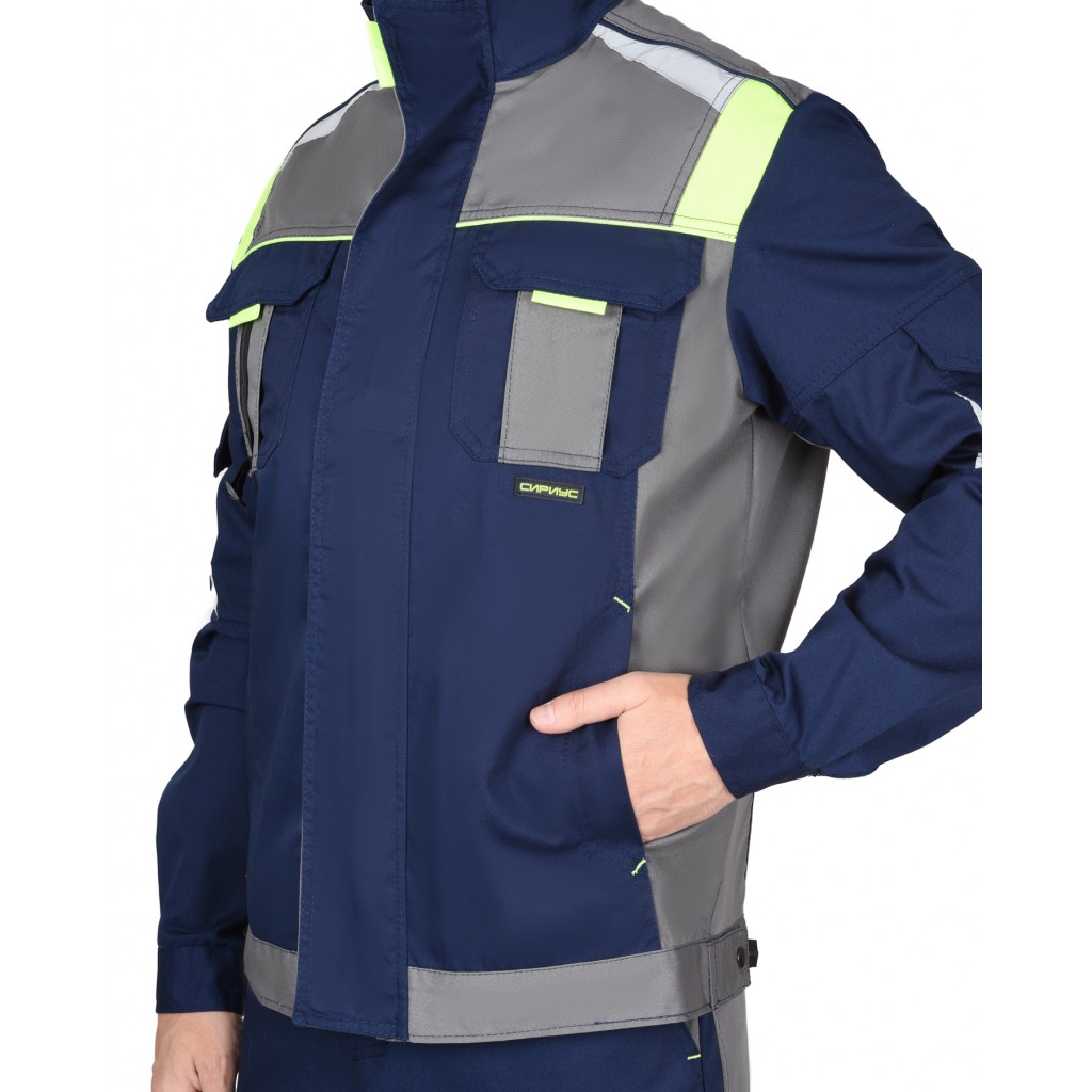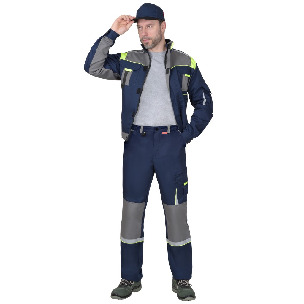 Костюм СИРИУС-СТАН куртка, брюки, синий со средне-серым и лимонной отделкой