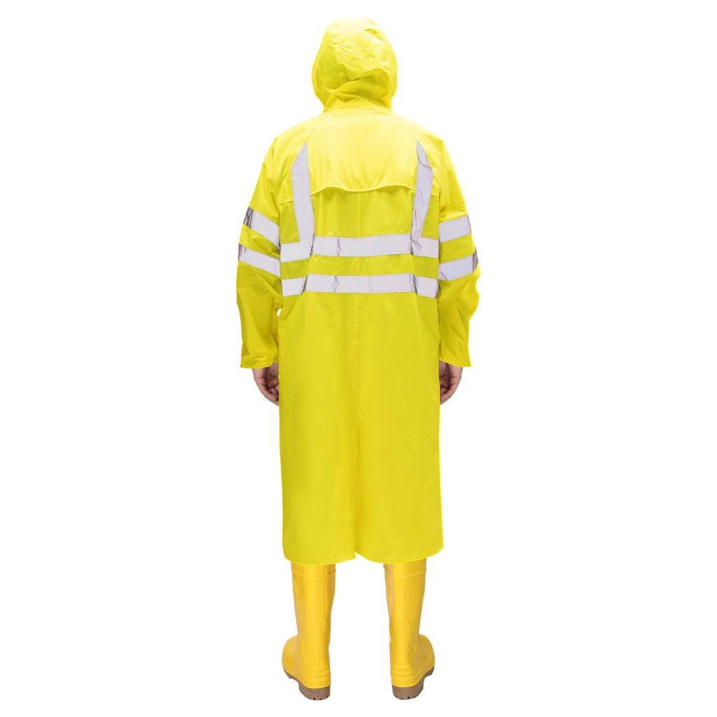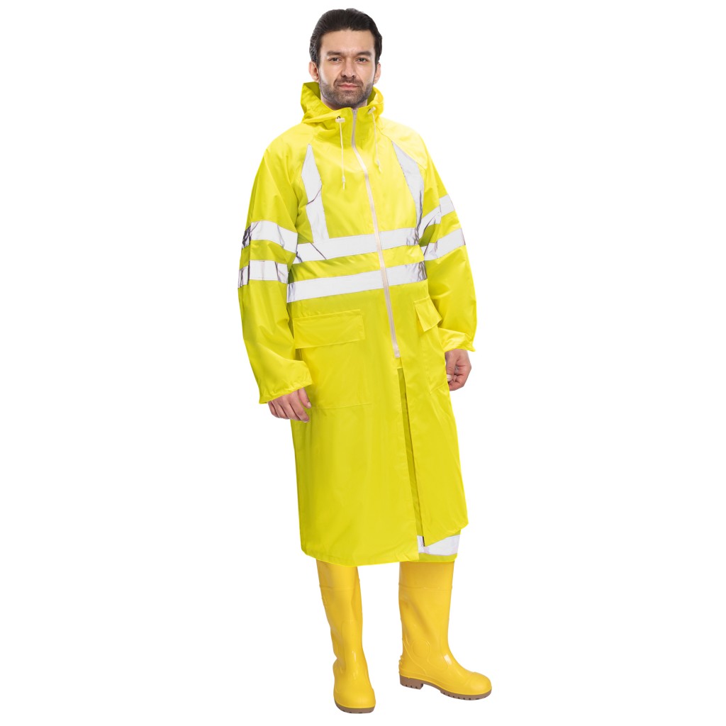Практичный, функциональный плащ для работы и отдыха в непогоду с акцентом на безопасность.