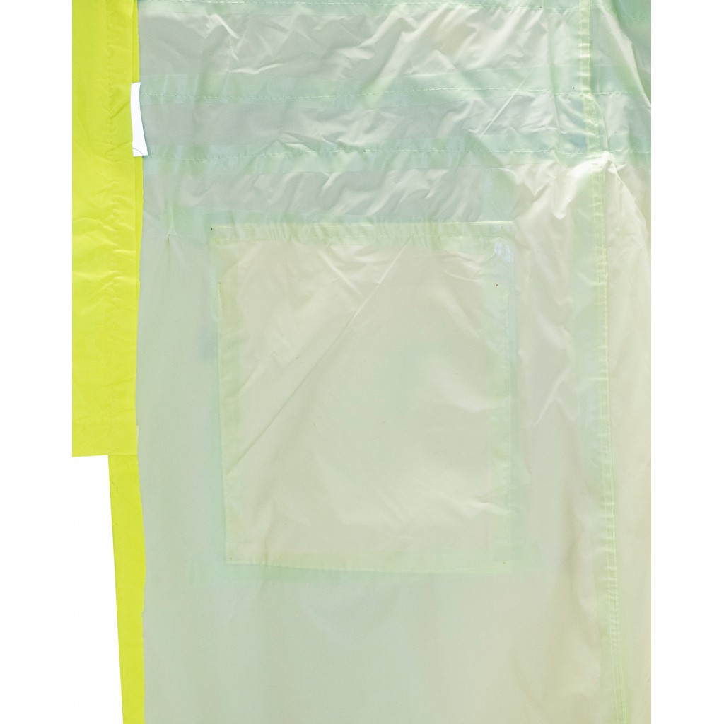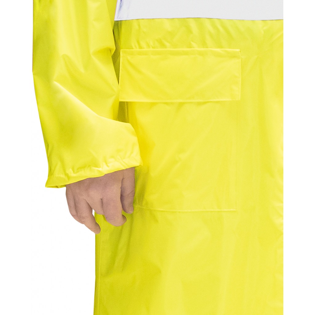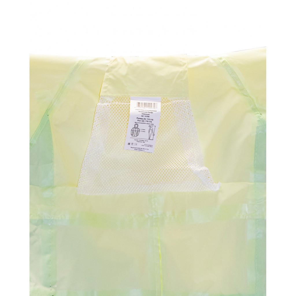 Плащ изготавливается из прочной плащевой ткани ярко-лимонного цвета с ПВХ покрытием. Вес ткани — 225 гр./метр.кв.