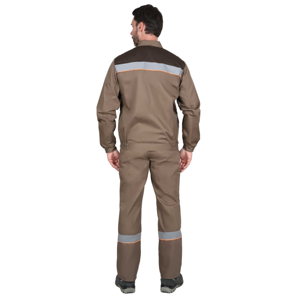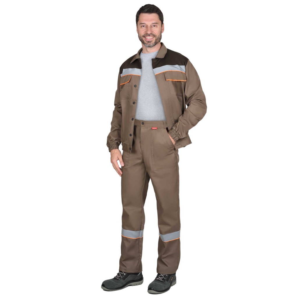 Костюм СИРИУС-МАСТЕР куртка кор., брюки, кофейный с тёмно-коричневым и оранжевым кантом с СОП