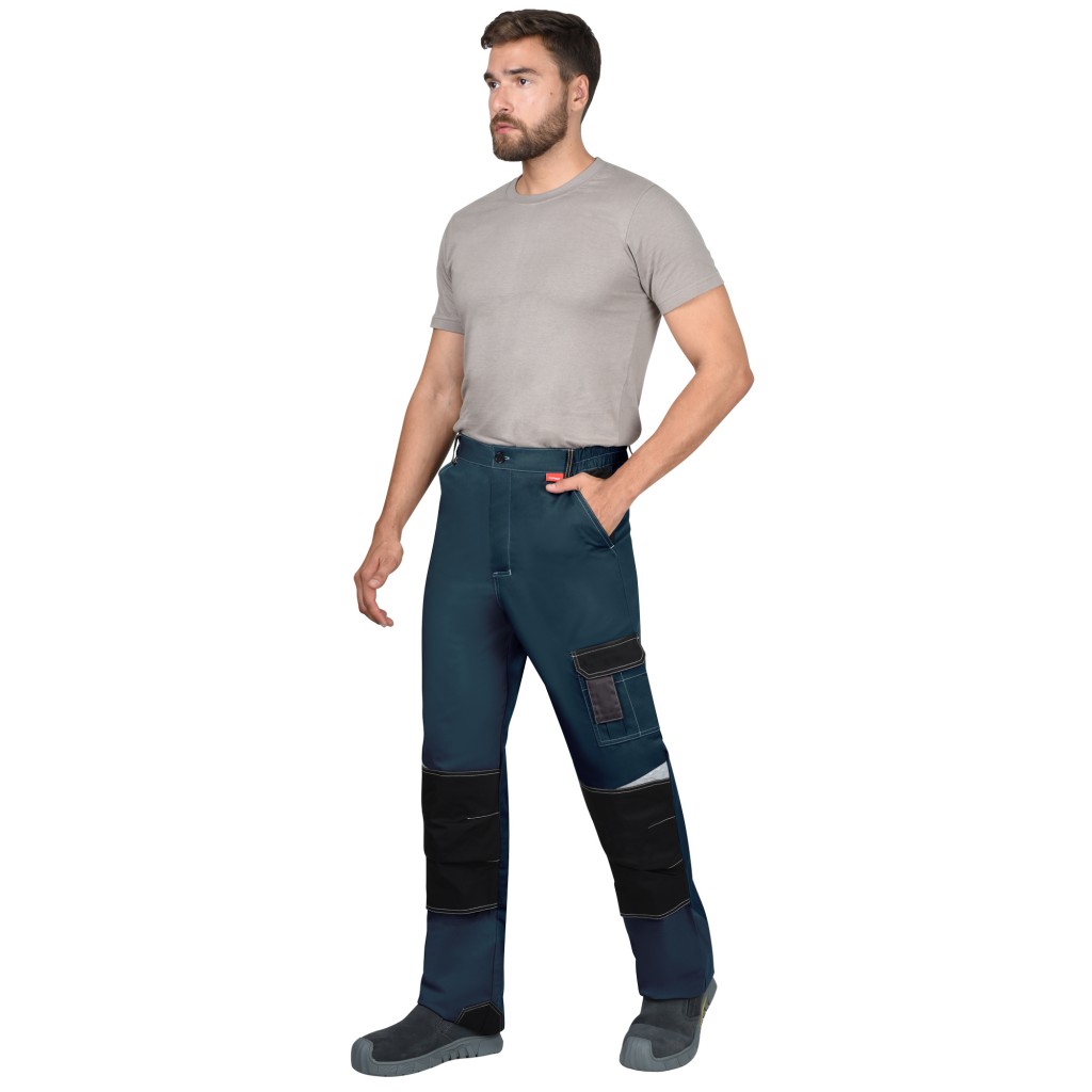 Брюки с застёжкой спереди – гульфик с молнией, с отрезным поясом, застегивается на пуговицу, с боковыми внутренними карманами на передних половинках, с накладными карманами на правой задней половинке и на левом боковом шве. Брюки с объемными наколенниками с нижним входом для амортизационного вкладыша. В брюках предусмотрены светоотражающие элементы, для обозначения сигнальной видимости.