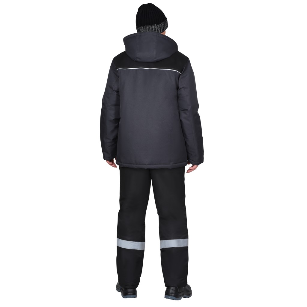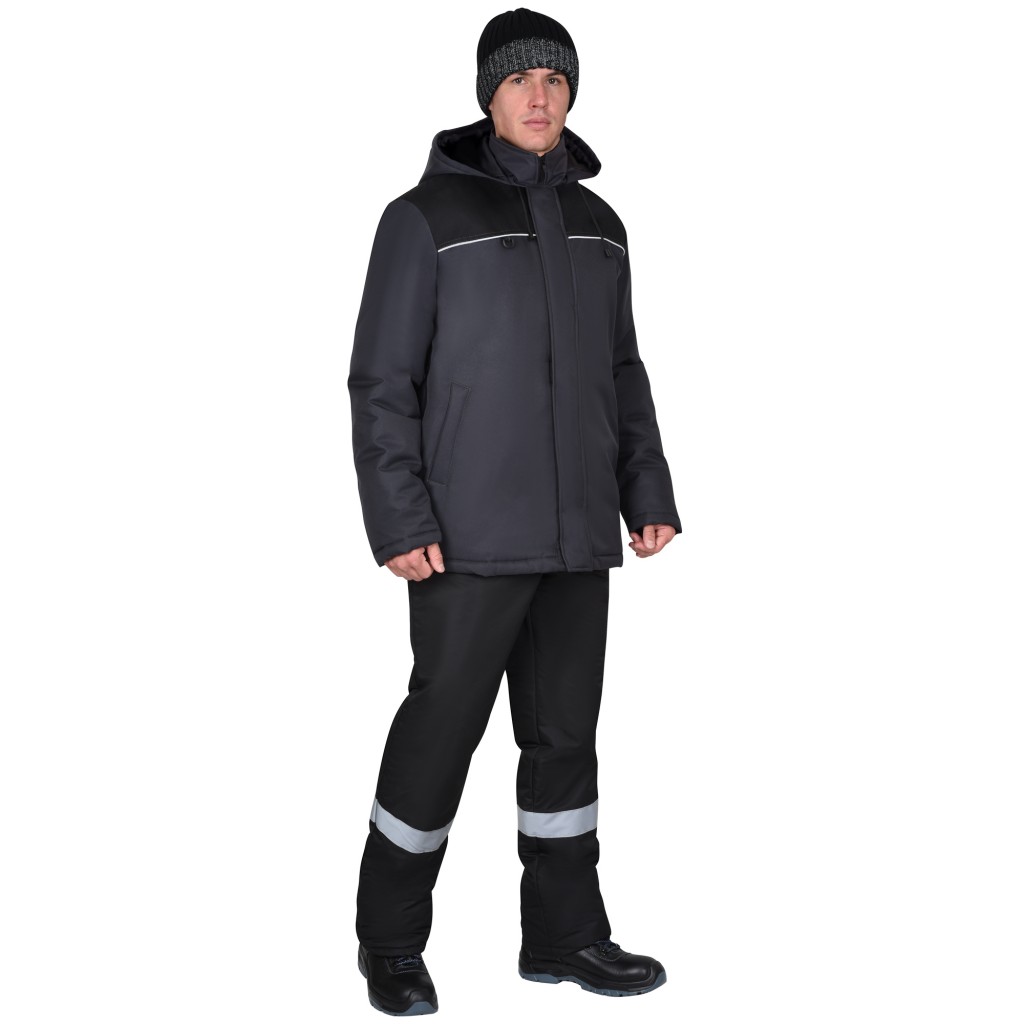 Куртка СИРИУС-МАСТЕР-М зимняя, тёмно-серая с чёрным и СВ кантом, с флисовым воротником и капюшоном