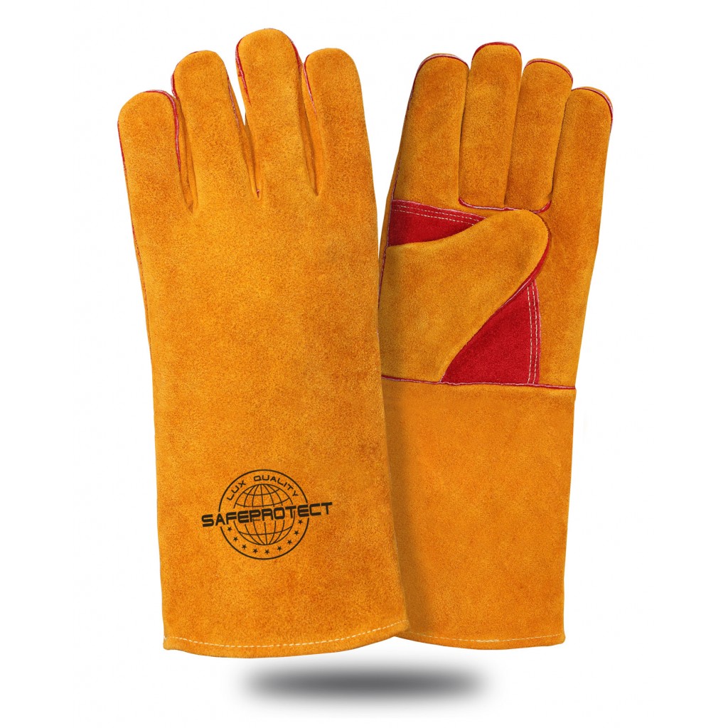 Краги спилковые Safeprotect усиленные желто-красные (подкладка) дл.40 см р.12 (х12х60)