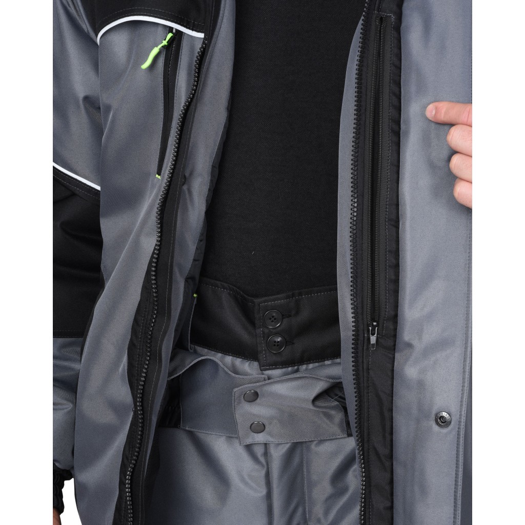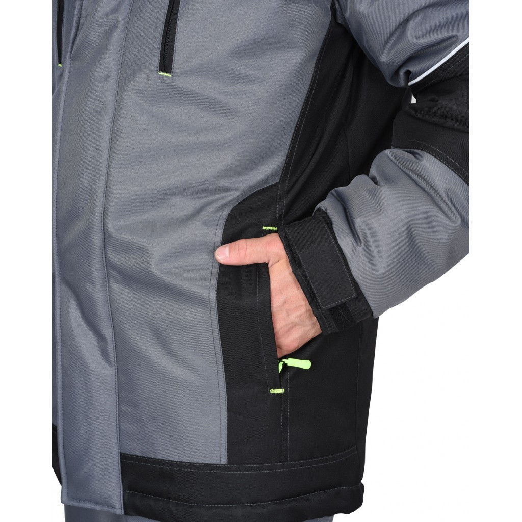 Костюм зимний 3 класса защиты предназначен для IV климатического пояса, состоит из куртки и брюк. В костюме предусмотрен СВ-кант для обеспечения сигнальной видимости.