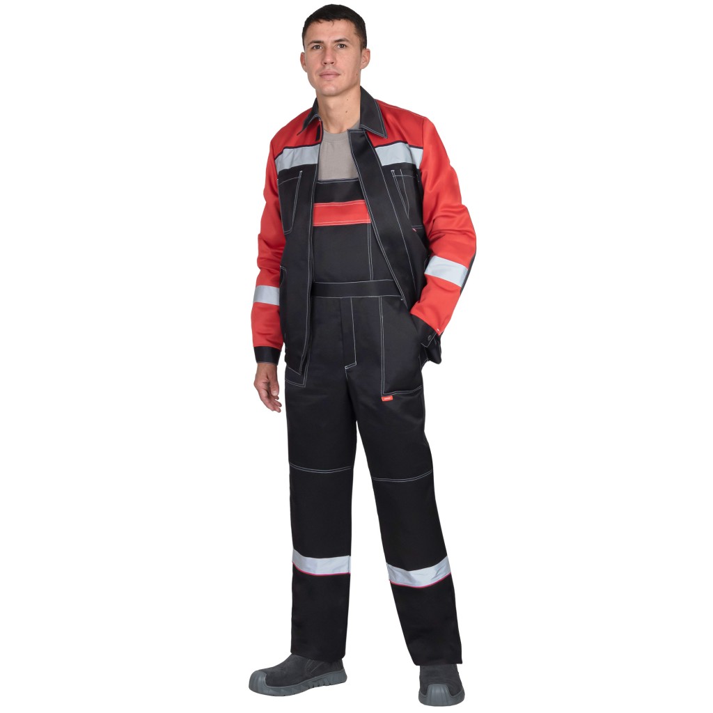 Костюм СИРИУС-ЛИГОР-2 куртка короткая, п/к, черный с красным и СОП