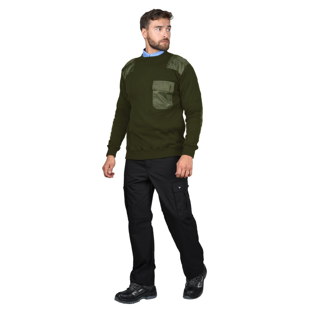 - Описание: Джемпер форменный для сотрудников охранных предприятий с круглым вырезом и с усилительными накладками в области плеч и локтей, для защиты от протирания и более длительного использования джемпера. Джемпер с накладным карманом и погонами из курточной ткани. Длинные рукава обеспечивают полную защиту рук, а эластичная манжета на рукаве удерживает тепло.