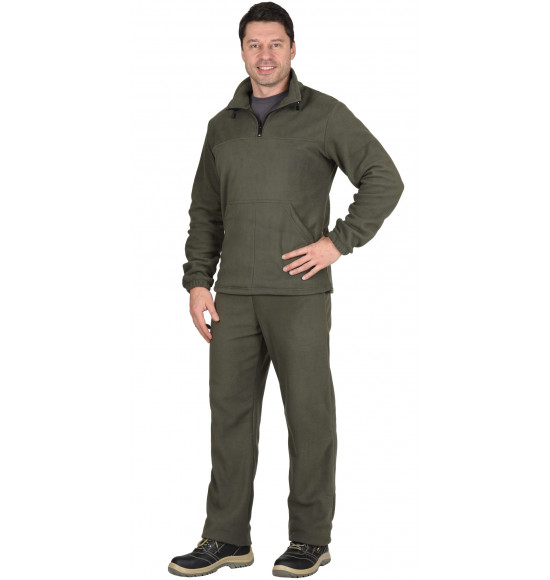 - Описание: Джемпер прямого силуэта со шнуром по воротнику -"стойке" и низу, резинкой по низу рукавов, с одним нижним накладным фигурным карманом с вертикальным делением по центру на два кармана. Брюки прямого покроя;с резинкой и шнуром. ТУ 8550-001-81391241-2008.