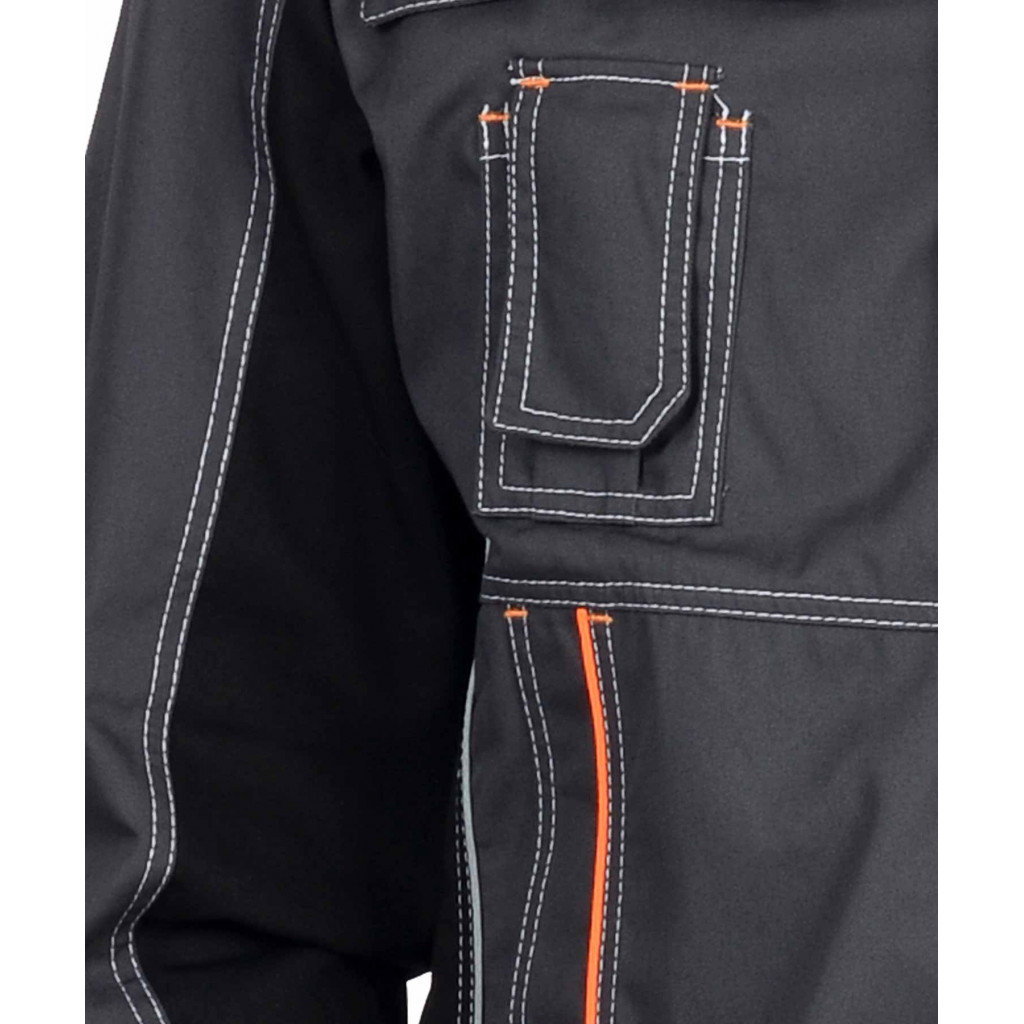 Полукомбинезон прямого силуэта, застежкой гульфика на молния, с различными многофункциональными карманами, с застежкой в правом боковом шве на пуговицы, с наколенниками, с бретелями регулируемыми эластичной тесьмой и фастексами, с эластичной тесьмой по линии талии, на передних половинках в рельеф вшивается СВ кант.