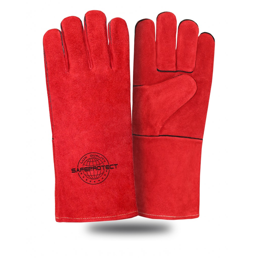 • Краги спилковые ЯМАЛ Safeprotect красные (флисовая подкладка) р.10,5 (х12х60)