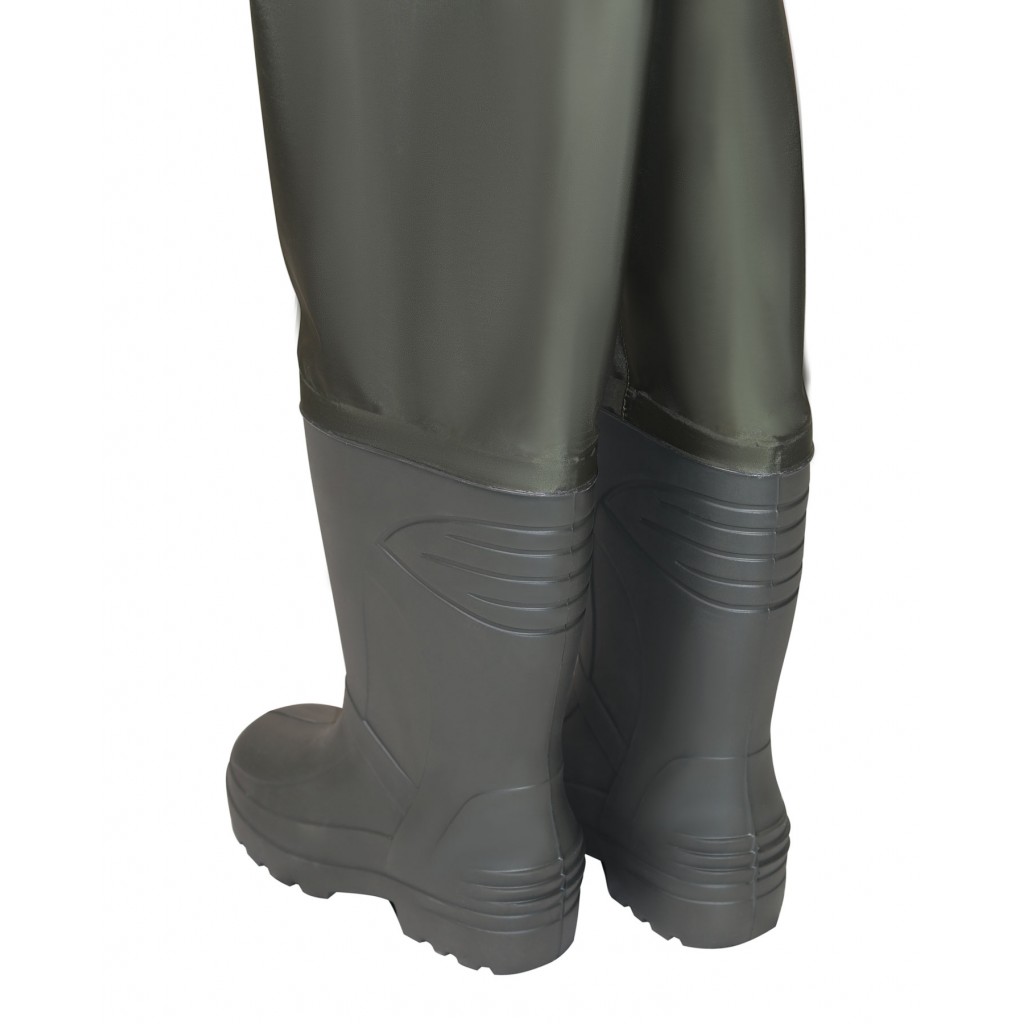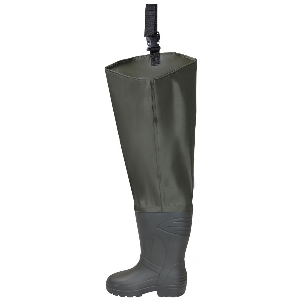 Верхняя часть сапога крепится к ремню брюк при помощи регулируемого ремешка на липучке.