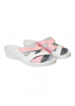 Туфли Сабо КОМФОРТ белые с розовым нат.кожа