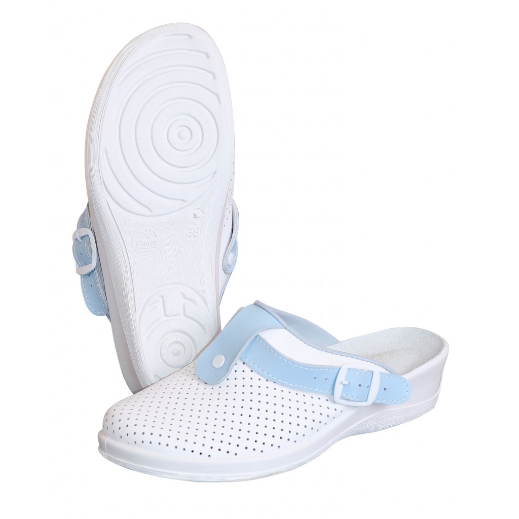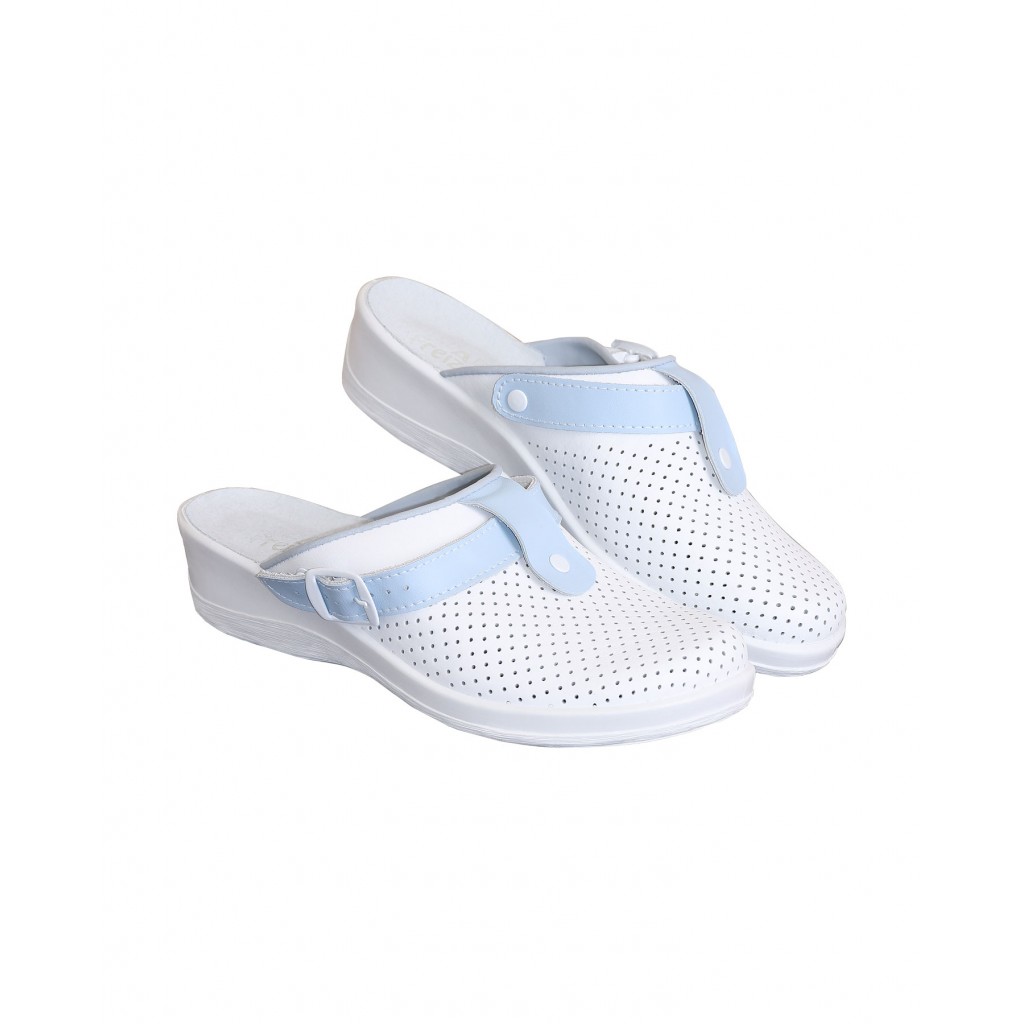 Туфли Сабо КОМФОРТ белые с голубым нат.кожа