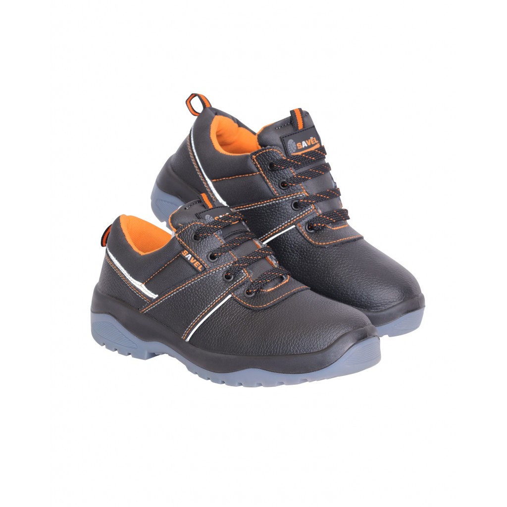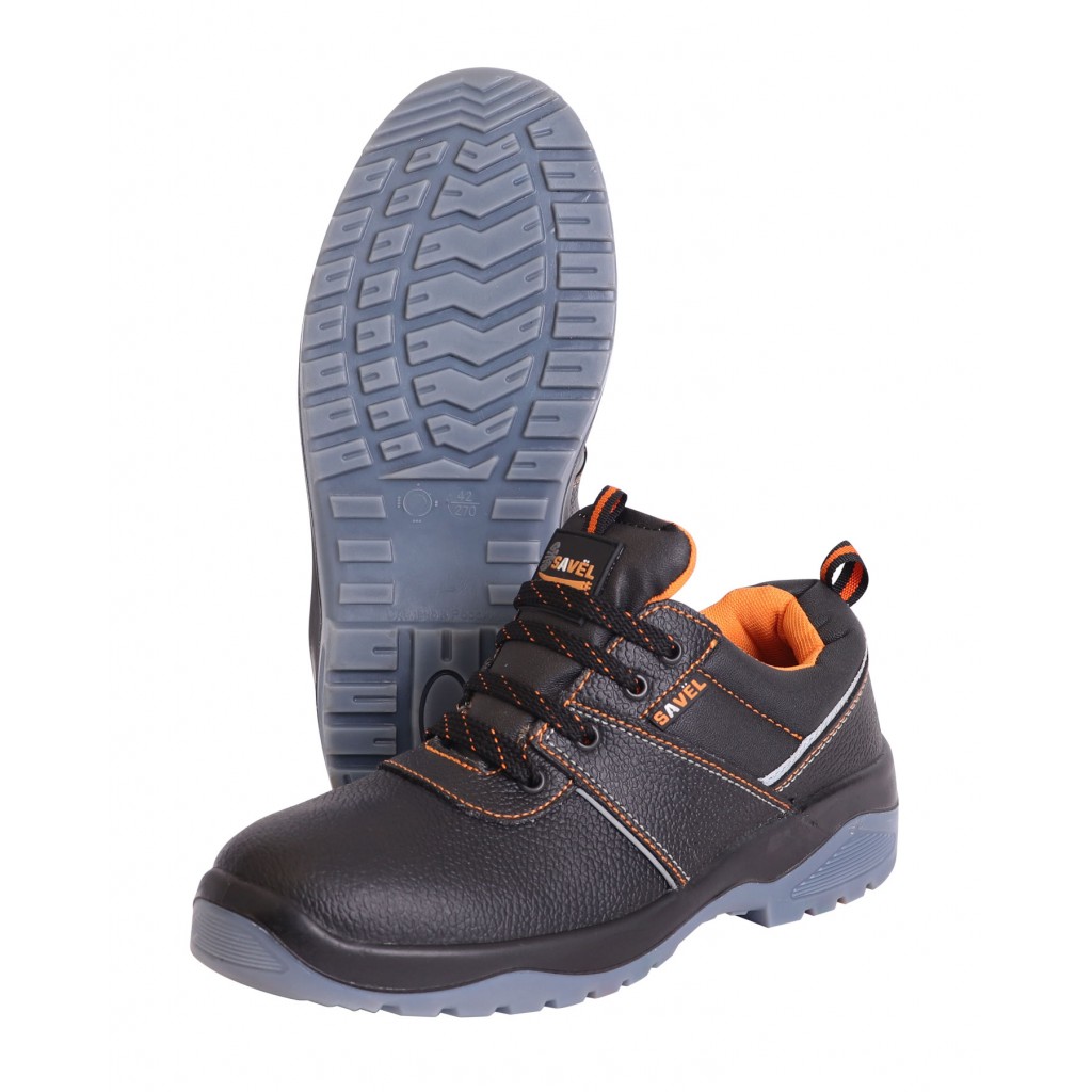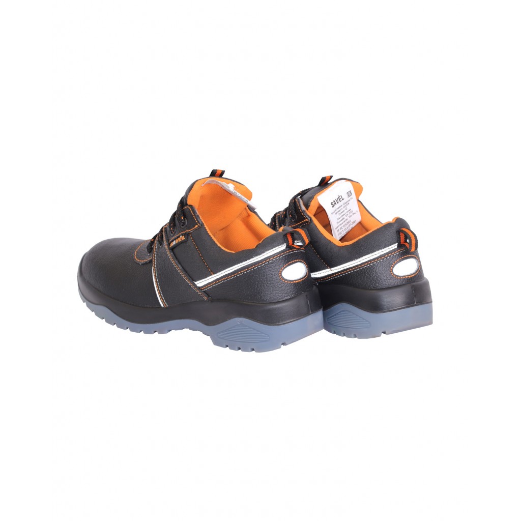 Подклад в ботинках серии "SAVEL-Европа" оранжевого цвета и выполнен из воздухопроницаемого нетканого материала «типика», который обеспечивает комфортный микроклимат, быстро сохнет и имеет высокую степень устойчивости к истиранию. Верх ботинка имеет контрастные отделочно-скрепляющие строчки оранжевого цвета, как и подкладка, а также световозвращающие вставки для лучшей видимости в тёмное время суток. Полуботинки оснащены металлоподносками, предохраняющими ноги от удара и имеющими удельное сопротивление деформациям не менее 200 Дж, что регламентировано европейскими стандартами (EN-345). Антипрокольная стелька, расположенная между промежуточным слоем подошвы и штробельной подкладкой, дополнительно защищает стопы ног от проколов, порезов, сильных ударов и прочих производственных травм. Колодка обладает полнотно-размерными характеристиками защитной обуви, предназначенной для эксплуатации в летний и весенне-осенний периоды, даёт возможность работать полный рабочий день с комфортом и без усталости. Обувь предназначена для работы в нефтегазовой, горнодобывающей, энергетической, химической промышленности, на транспорте, в агропромышленном комплексе и сервисных службах.