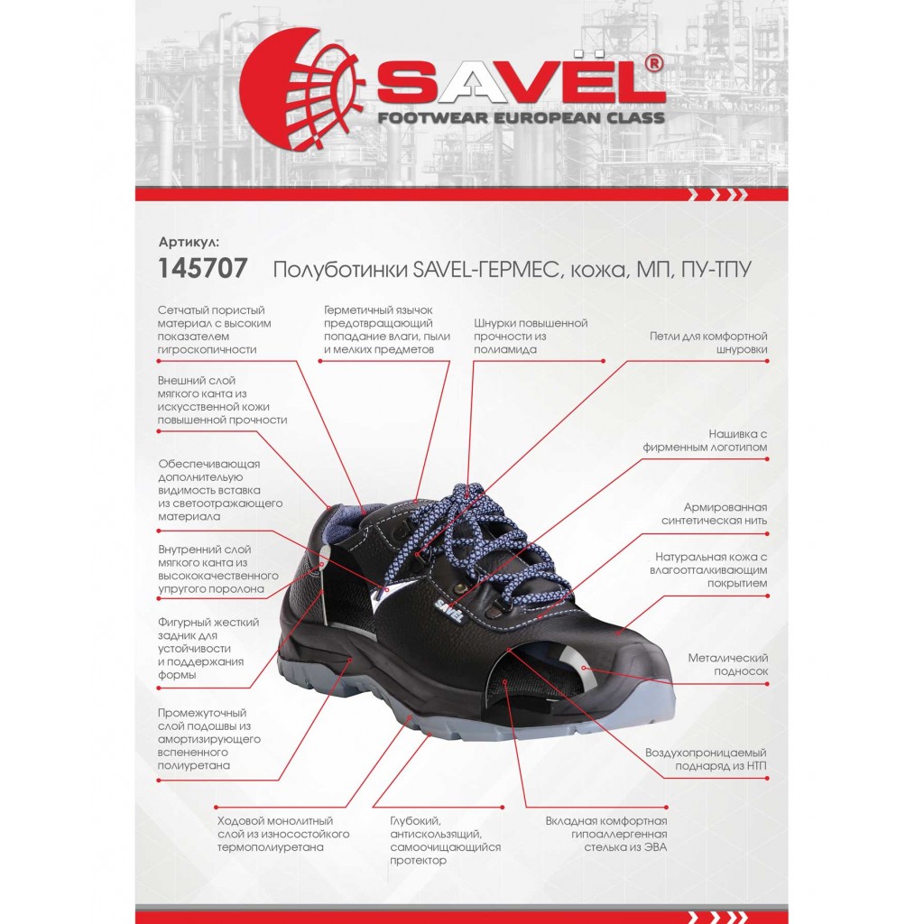 - Описание: Полуботинки серии "SAVEL-ГЕРМЕС" предназначены для эксплуатации в летний и весенне-осенний периоды.