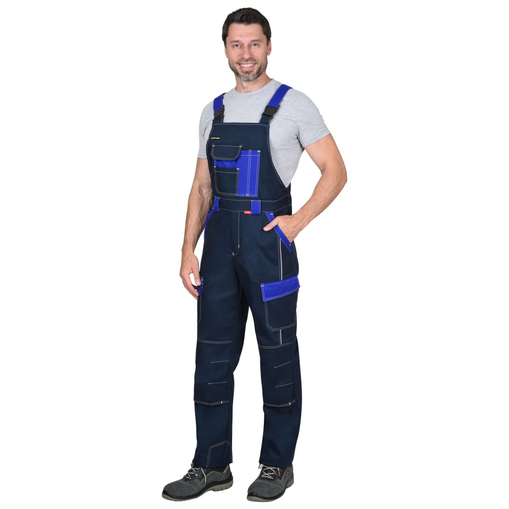 Полукомбинезон СИРИУС-КАРАТ-РОСС темно-синий с васильковым, 80% х/б, пл. 260 г/кв.м