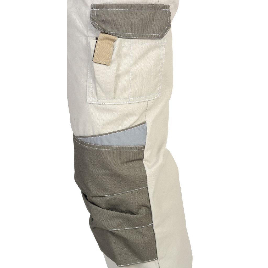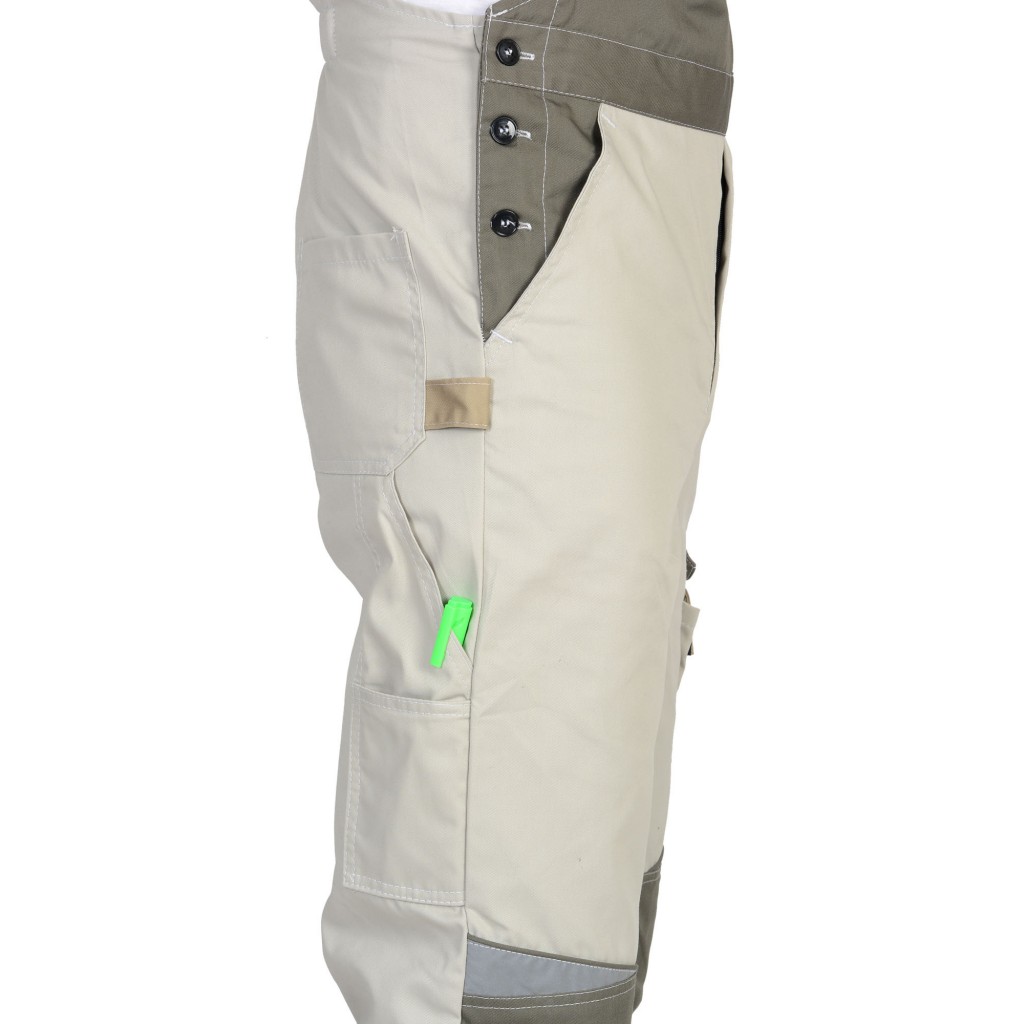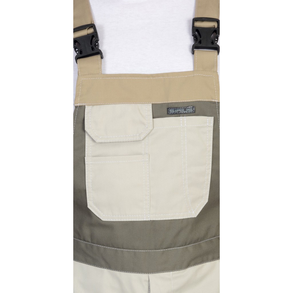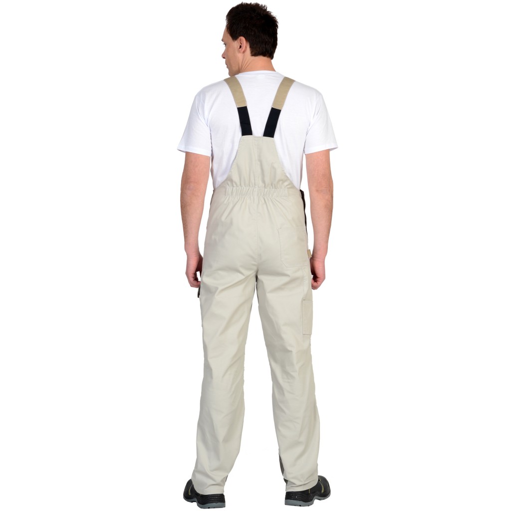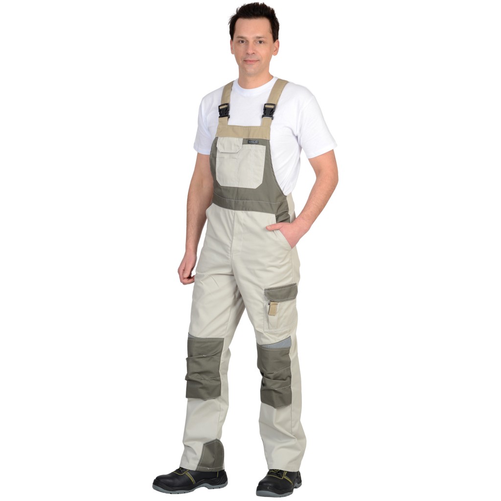 • Описание: Полукомбинезон прямой с застёжкой спереди на «молнию» и с застёжкой в правом боковом шве на пуговицы, с отрезной грудкой, цельнокроенной спинкой, с бретелями. Передние половинки с объёмными наколенниками фигурной формы по верху. Задние половинки цельнокроеные, с верхним накладным карманом, с карманами для инструментов, настроченными один на другой, и шлёвкой для инструмента.