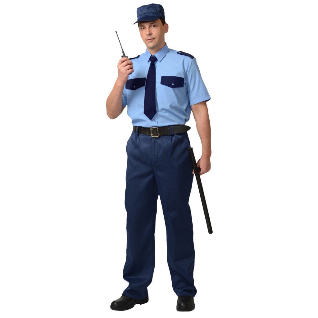 Рубашка Охранника, короткий рукав, голубая с темно-синим