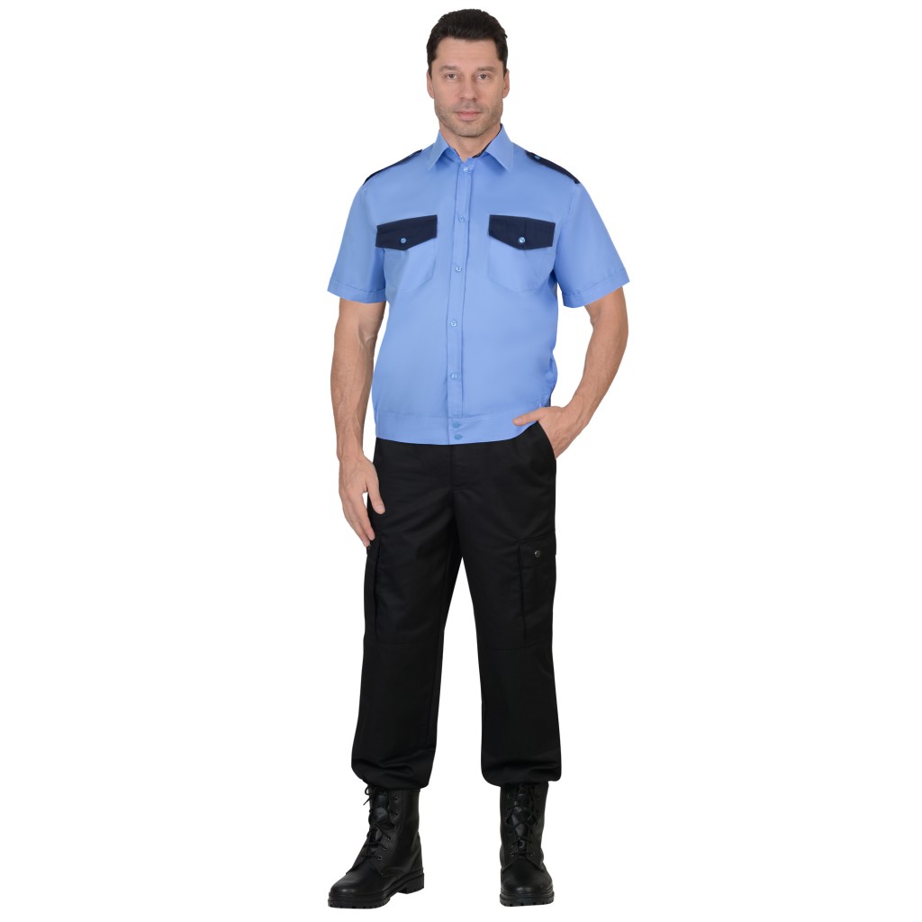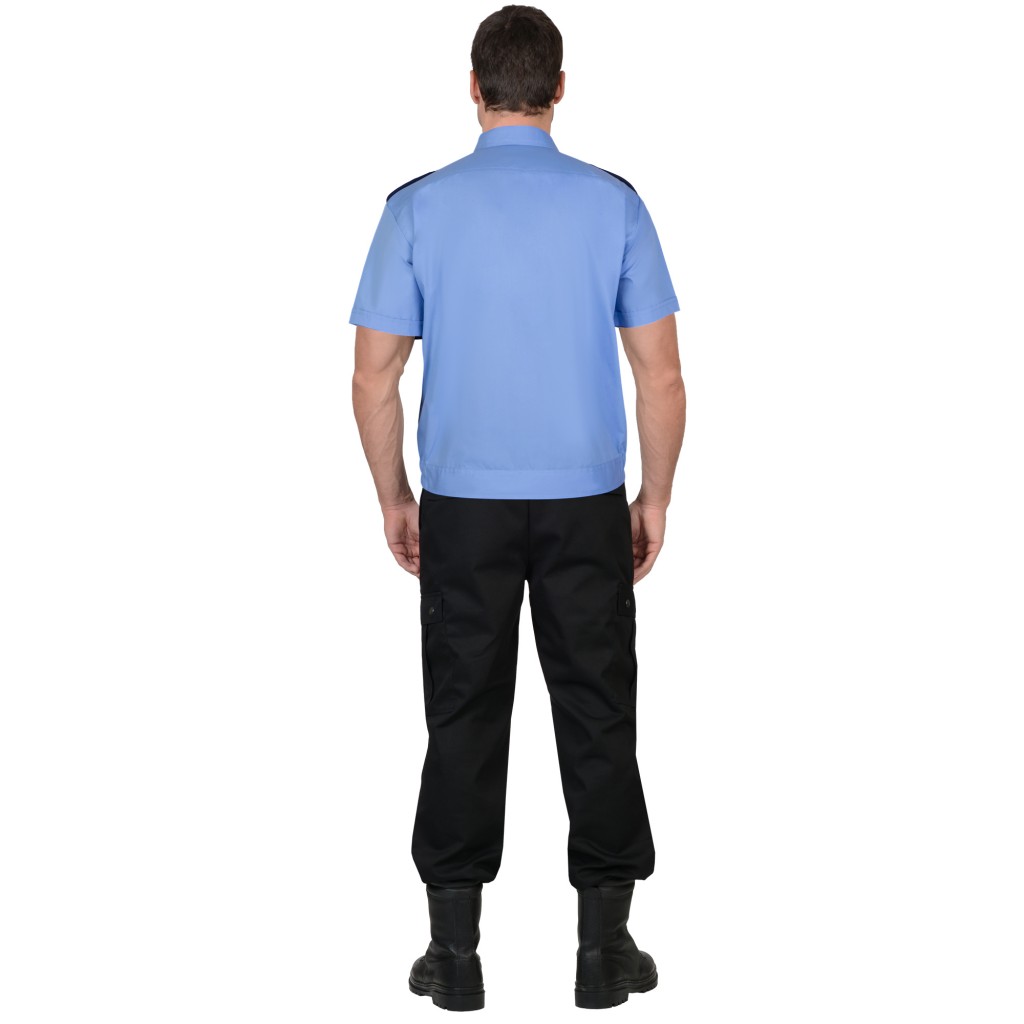 Рубашка Охранника на резинке, короткий рукав, голубая с темно-синим