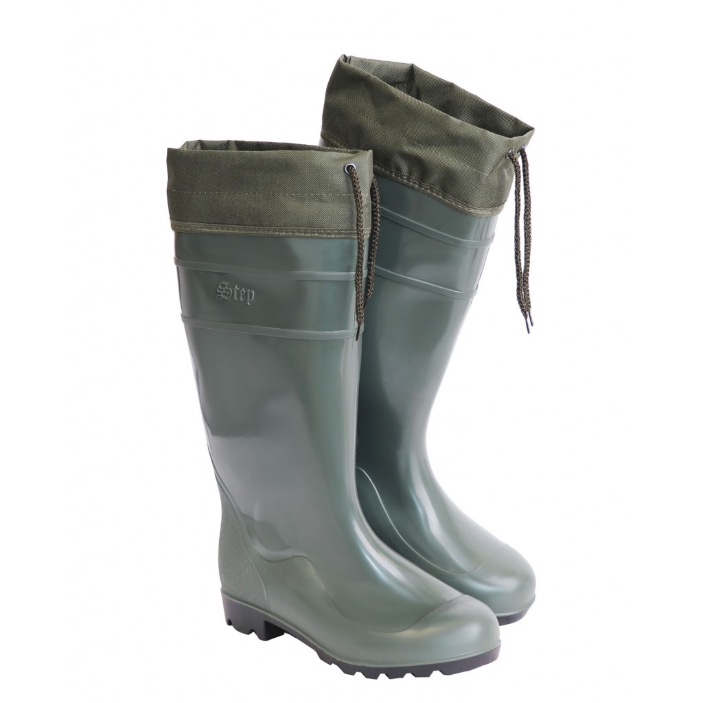 • Описание: Верх из ткани с водоотталкивающей пропиткой. Сверху затягивается шнуром, который препятствует проникновению грязи и воды внутрь сапог. Размеры: 40-46.