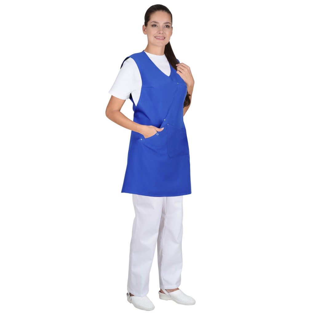 - Описание: Фартук предназначен для защиты переда и боковых частей работающих от вредных производственных факторов в сфере обслуживания. Фартук с цельновыкроенным нагрудником с V- образным вырезом горловины. В правой боковой части карман застёгивающийся на кнопку. С левой стороны накладной карман с наклонным овальным входом и скошенными нижними углами. Карман разделен на два отделения. Боковые завязки для регулировки фартука на фигуре по объему.