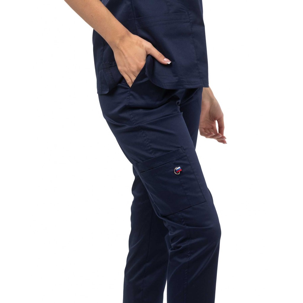 Костюм В-504 женский, блуза, брюки, тёмно-синий