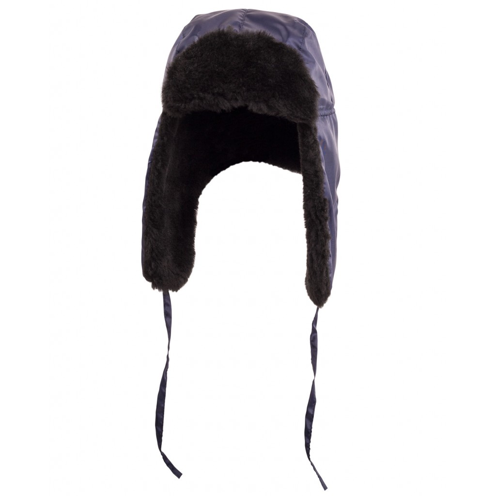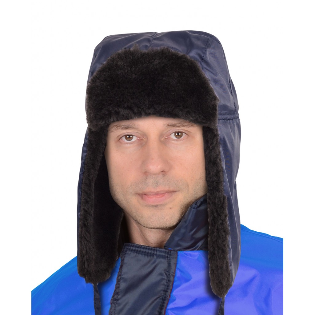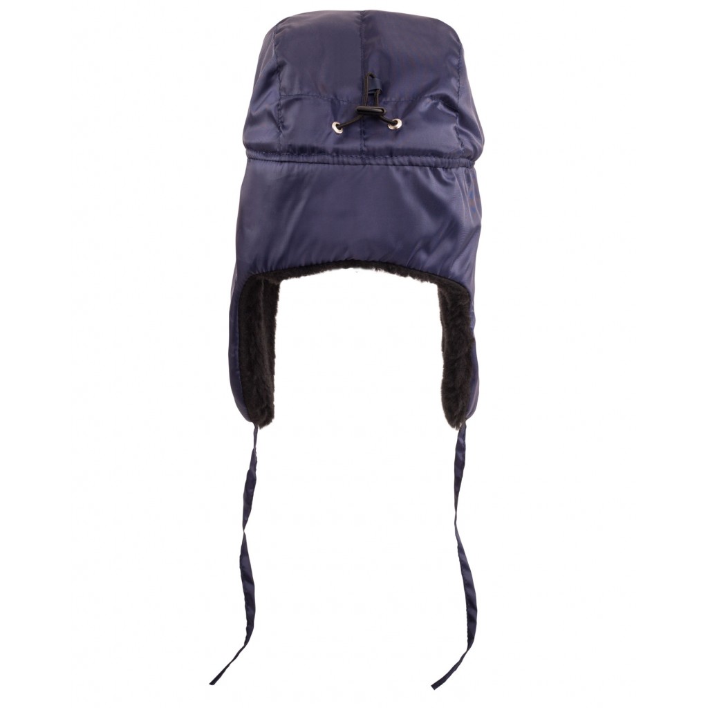 • Описание: Шапка-ушанка зимняя темно-синяя с искусственным мехом черного цвета. В затылочной части объем регулируется за счет резинки и фиксатора.