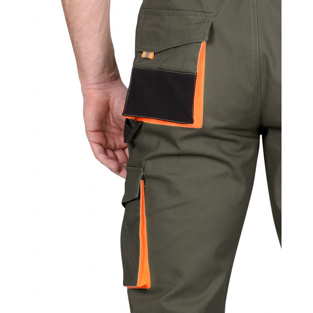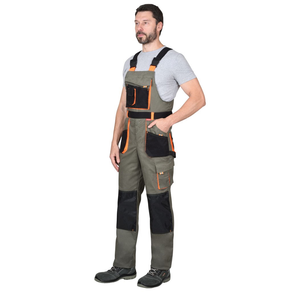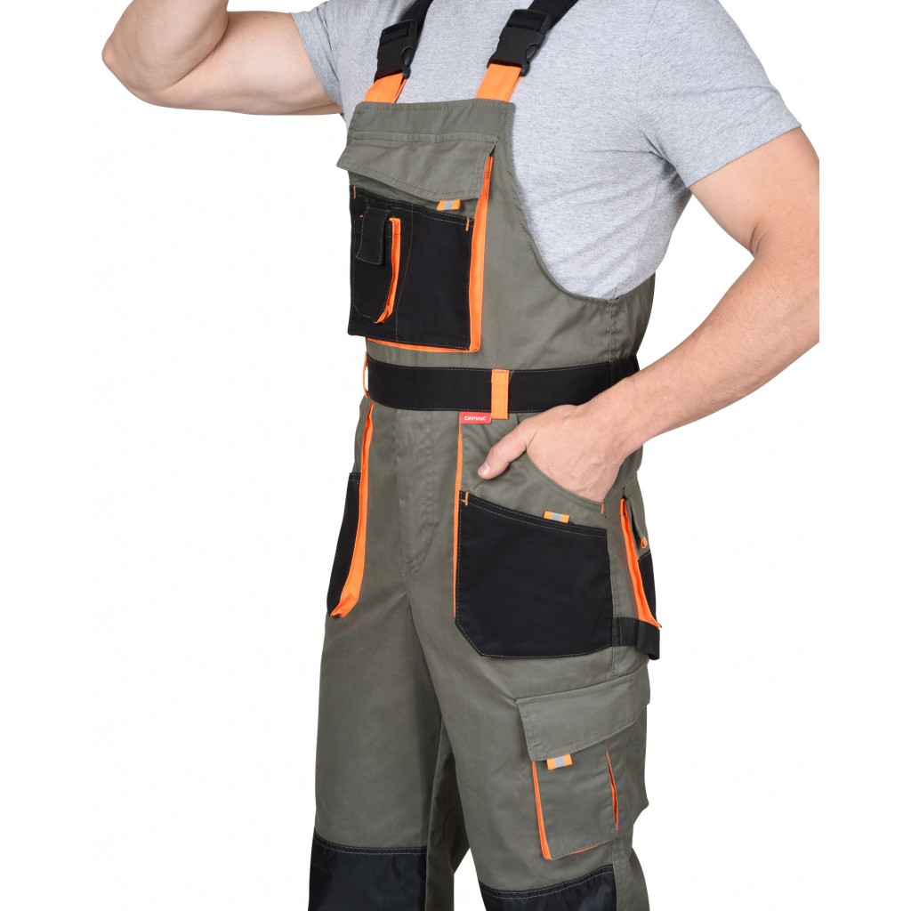Полукомбинезон СИРИУС-МАНХЕТТЕН оливковый с оранжевым и чер. тк. мех. стрейч пл 260 г/кв.м