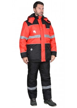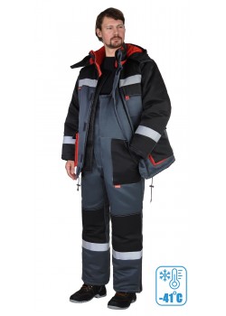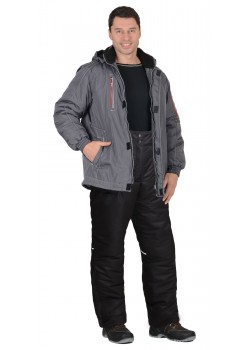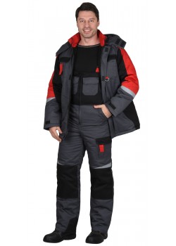 Костюм СИРИУС-ПРОФИЛЬ зимний, куртка, п/к, темно-серый с черным, красной отделкой и СОП
