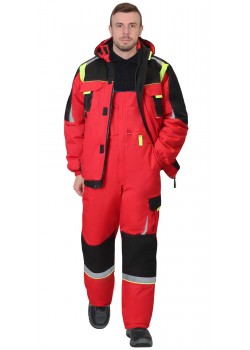Костюм СИРИУС-СТАН куртка, п/к, красный с черным и лимонной отделкой