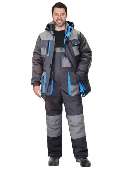 Костюм СИРИУС-ДВИН зимний, куртка удл., п/к т.серый со ср.серым и голубой отделкой