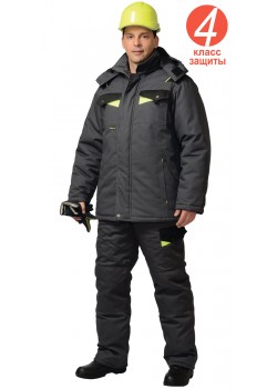 Костюм СИРИУС-ХОВАРД-М зимний, куртка длинная, брюки, темно-серый с черным, лимонной отделкой и СОП