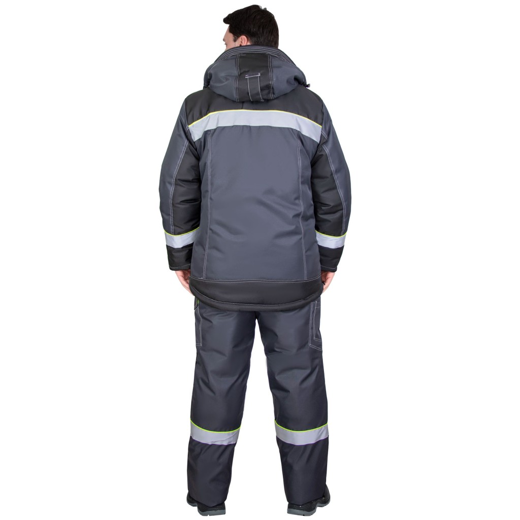 Костюм зимний состоит из куртки и брюк. В костюме предусмотрена лента светоотражающая ш.50 мм для обеспечения сигнальной видимости.