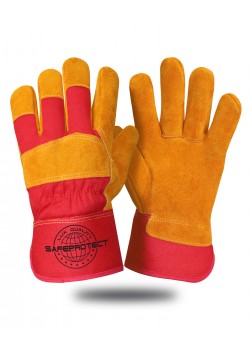 Краги спилковые утепленные СИБИРЬ Safeprotect усиленные желто-красные (меховые) р.10,5 (х6х60)